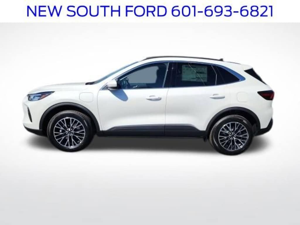 Star White Metallic Tri-Coat 2025 Ford Escape Plug-In Hybrid FWD eCVT 2.5L iVCT 2.5L iVCT, ABS brakes, Brake assist, Bumpers: body-color, Dual front impact airbags, Dual front side impact airbags, Equipment Group 700A, Four wheel independent suspension, Front Bucket Seats, Front dual zone A/C, Fully automatic headlights, Heated door mirrors, Heated front seats, Navigation system: Connected Navigation, Panic alarm, Power driver seat, Power Liftgate, Power windows, Radio data system, Remote keyless entry, Speed control, Spoiler, Steering wheel mounted audio controls, SYNC 4 w/Enhanced Voice Recognition, Tilt steering wheel, Traction control, Wheels: 18" Machined-Face Magnetic Aluminum.