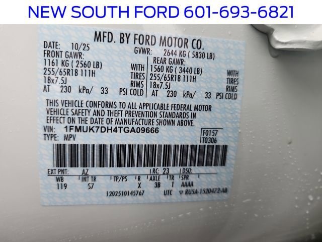 VIN Number: 1FMUK7DH4TGA09666